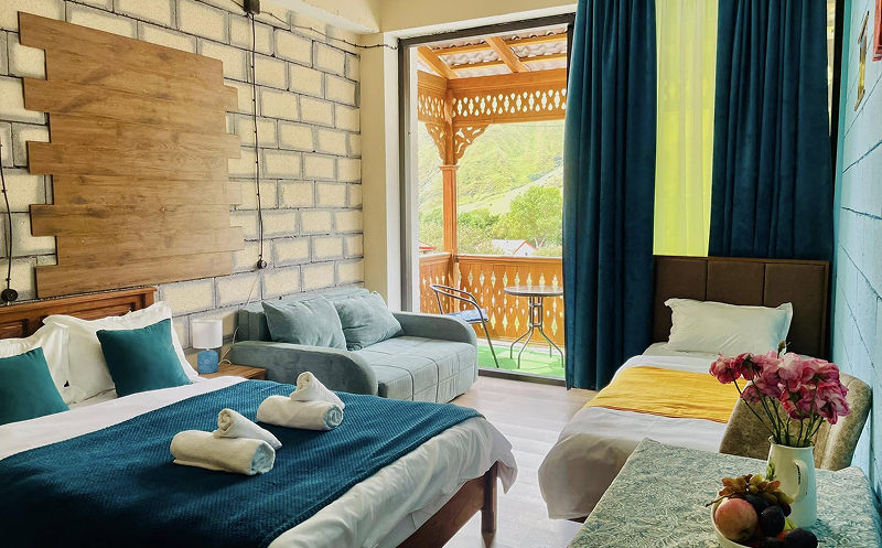 ყველა ოთახს აქვს საკუთარი სველი წერტილი, ასევე არის საერთო სამზარეულო. სასტუმრო შედგება 7 ნომრისგან.