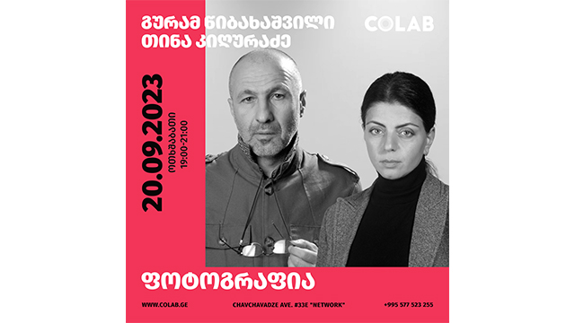 Colab • კოლაბი წარმოგიდგენთ გურამ წიბახაშვილის და თინათინ კიღურაძის ფოტოგრაფიის კურსს. სასწავლო პროგრამა აგებულია ვორქშოპის პრინციპზე და მაქსიმალურად არის დატვირთული პრაქტიკული სამუშაოებით. კურსის მიზანია სტუდენტმა შეისწავლოს ფოტოგრაფიის არამარტო თეორიული მხარე და საფუძვლები, არამედ განავითაროს ხედვა, დაგეგმოს, ააწყოს, სწორად ასახოს და გადმოსცეს სათქმელი. შეისწავლოს ფოტოგრაფიის როგორც თანამედროვე ასევე საწყისი ეტაპები.